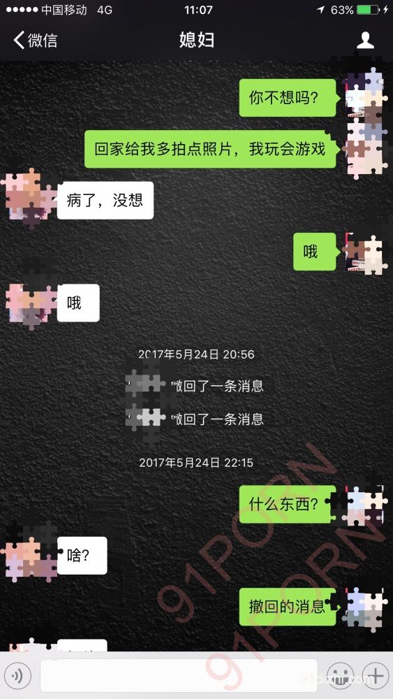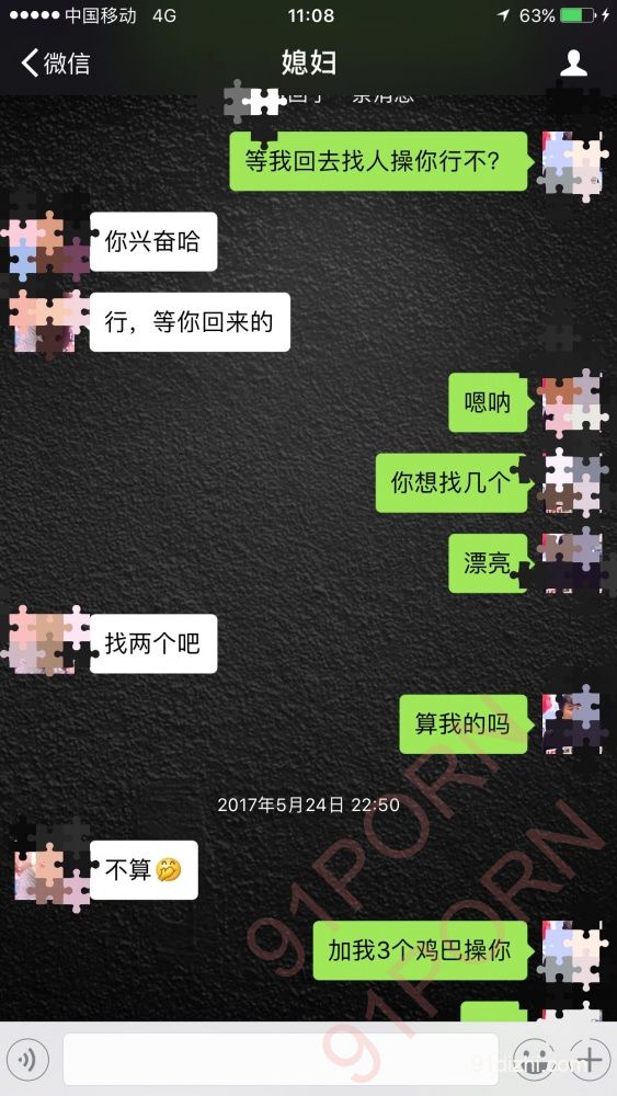 有一天在外地出差突然淫妻心理特别急切,所以就发生了下面的对话。见下图:
